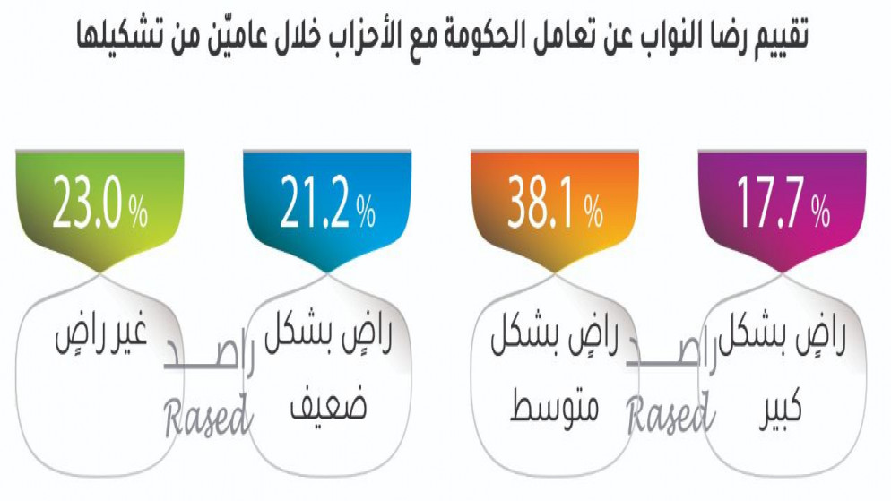 With regard to the government’s dealings with political parties, 17.7% of the representatives said that they were highly satisfied, 38.1% were moderately satisfied, while 21.2 percent said they were weakly satisfied, and 23% said they were not satisfied with the government’s dealings with the parties. political.